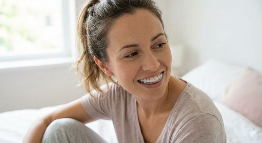 By cushioning your jaw and teeth, our hybrid guard significantly reduces the muscle strain associated with bruxism. This can lead to a noticeable reduction in headaches, jaw muscle pain, and neck tension. Users often report improved sleep quality, waking up feeling more rested and comfortable, free from the discomfort of nocturnal grinding.